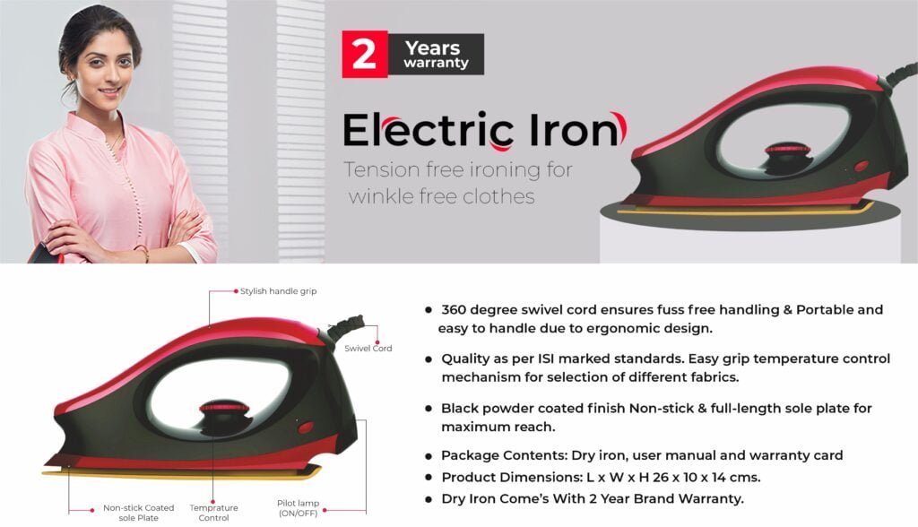 • Dry Iron Comes with 2 Year Brand Warranty.