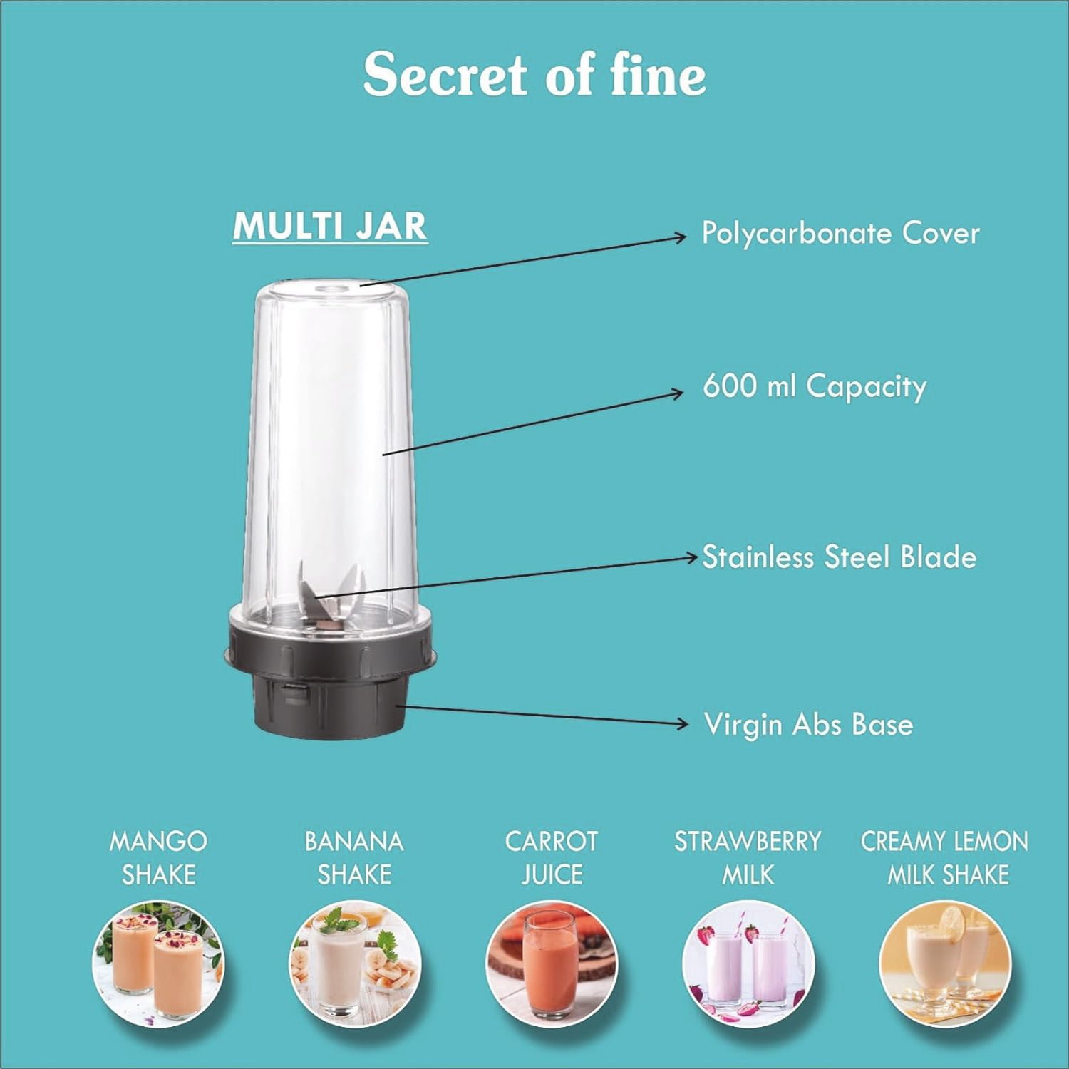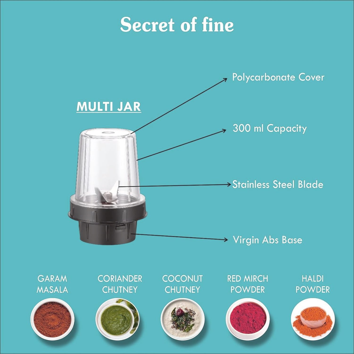 • Package Content: 1 Set of Mixer Grinder including Mixer Grinder Motor, One 18 gauge Stainless Steel Jars Set,1 Poly Jar, 2 Lids Set, and Warranty Card.