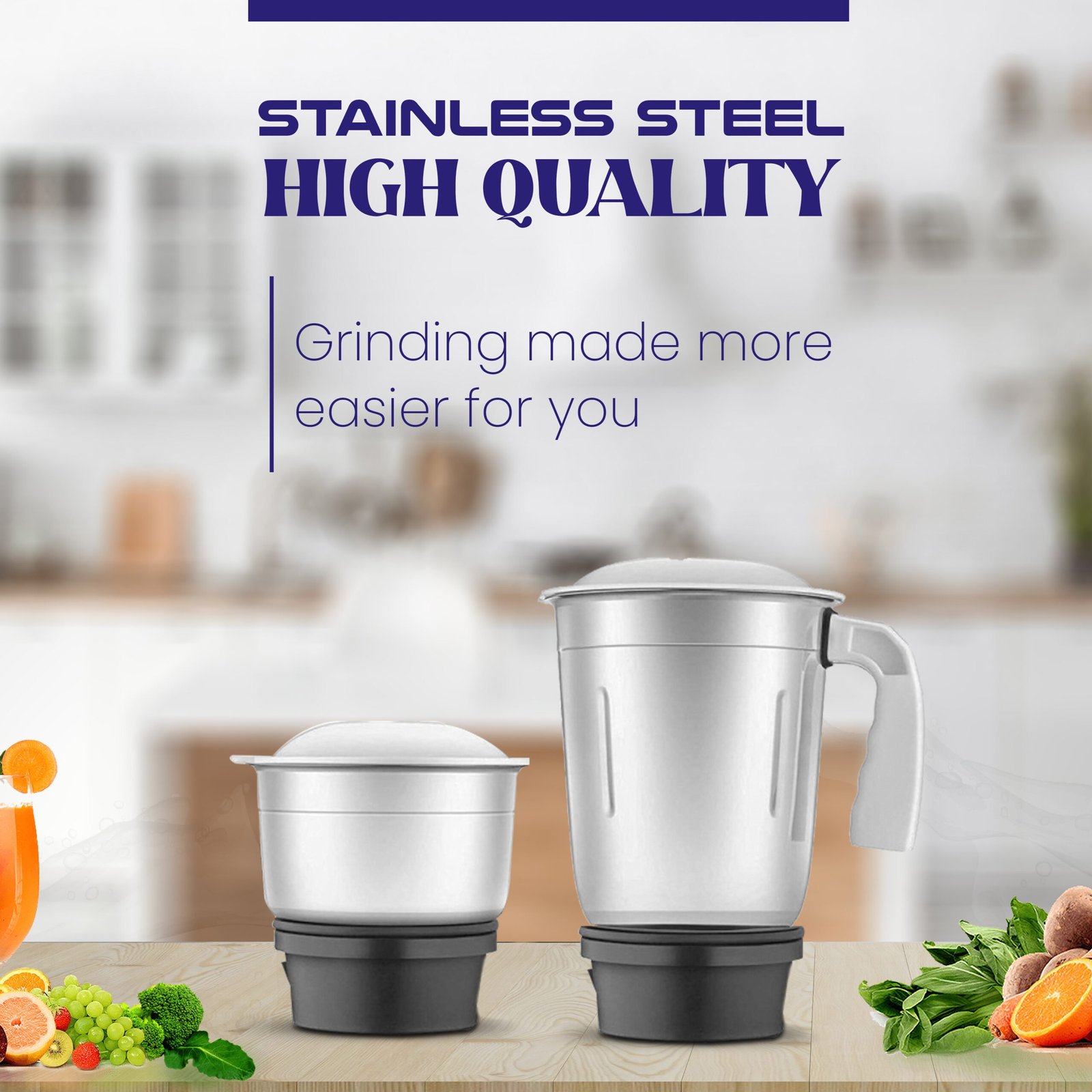• Package Content: 1 Set of Mixer Grinder including Mixer Grinder Motor, Three 18 gauge Stainless Steel Jars sets, 3 Lids Sets, and a Warranty Card.